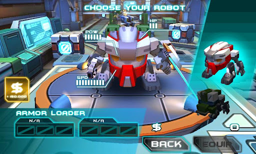 Armorslays utilizes a fast and easy to use digital joystick navigation. It allows you to use two fingers at once: One for movement, the other to shoot your gun or pull your sword. The more enemies that die, the more money you will earn. But be sure to invest it wisely. Spend your hard-earned cash on a new robot look or perhaps more powerful weapons or even special boosts which will make you stronger that give you a boost for land, sea or sky battles.